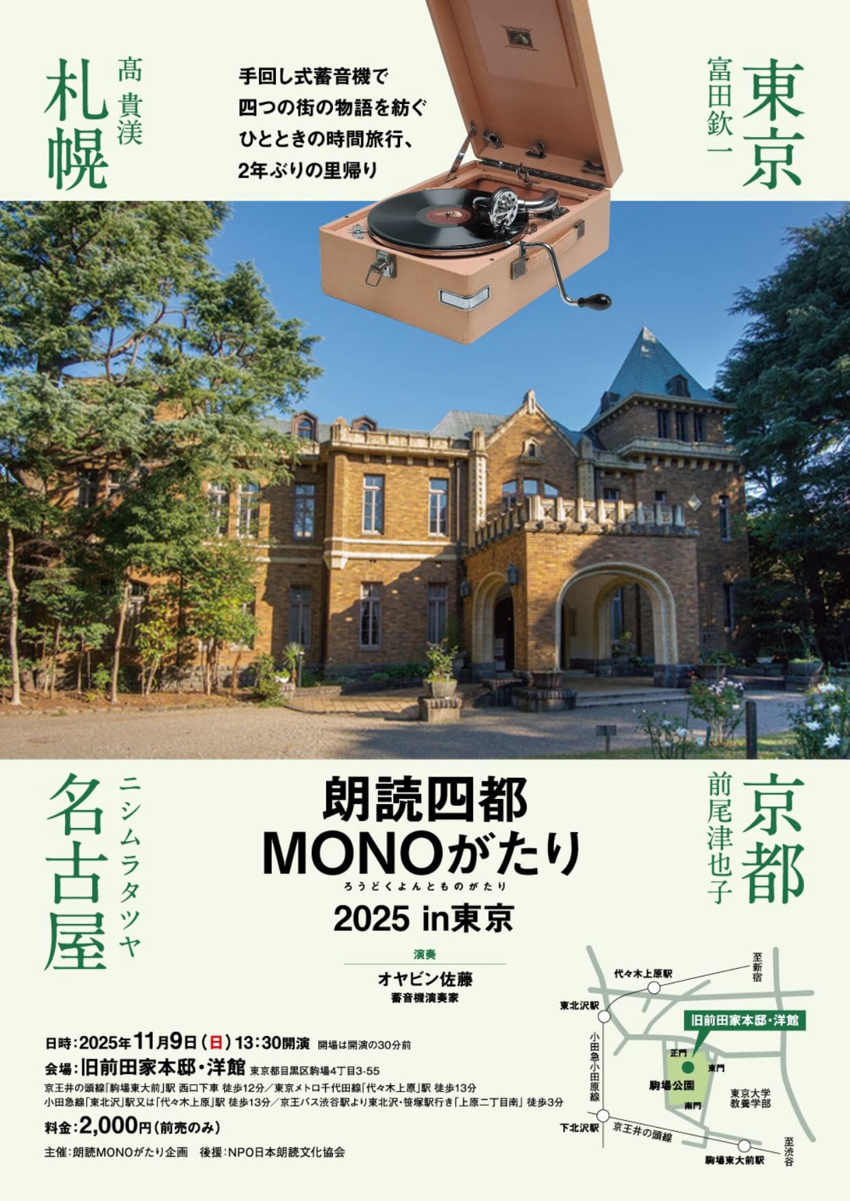恒例の年末イベント! 朗読の輪! 第17回 朗読アラカルト 日時 2024年12月1日(日) 12:00 開演(11:30 開場) 会場 港区麻布区民センター 区民ホール(港区六本木 5-16-45) 入場無料(全席自由) ◆演出:倉田ひさし ◆選曲・効果:園田圭吾 ◆音響:山﨑哲也 ◆照明:いろり […]
